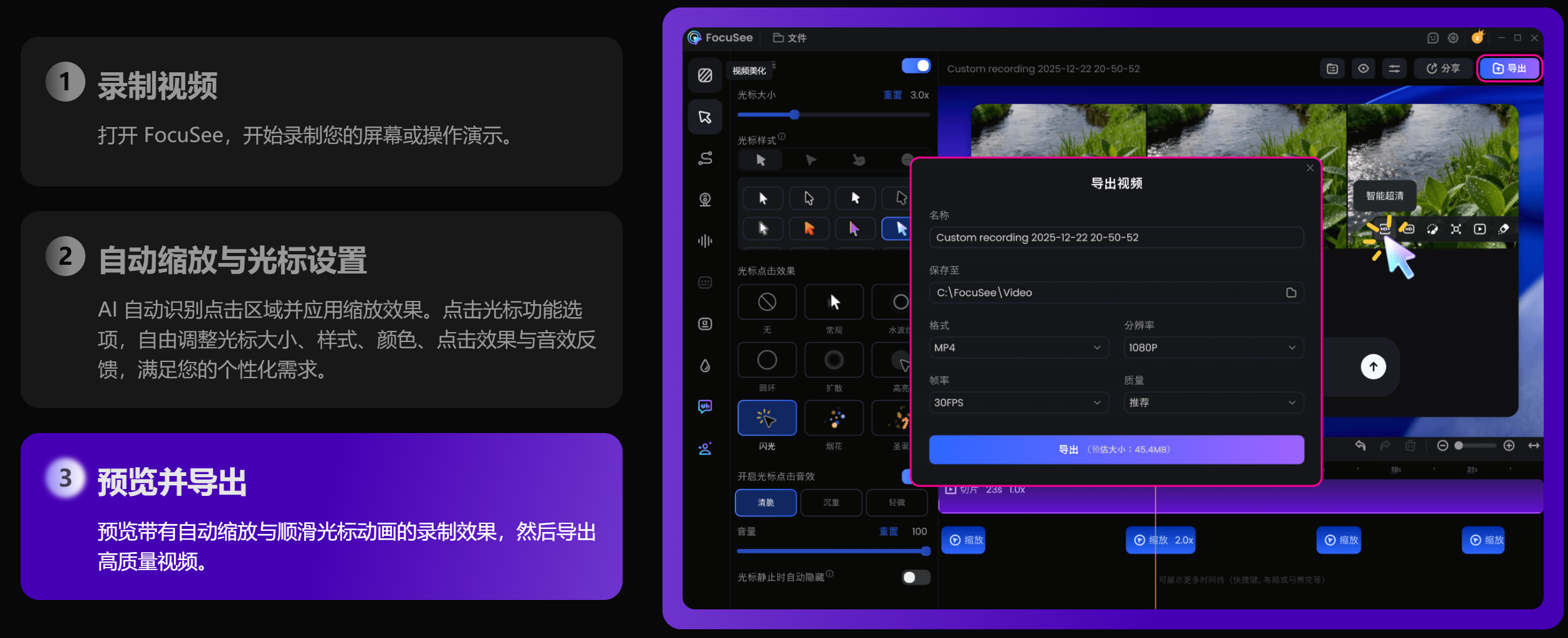 在使用 FocusSee 之前,我常常为如何清晰地展示屏幕操作过程而烦恼。无论是制作教程视频,还是给团队展示项目成果,普通的屏幕录制总是缺乏重点,观众很难一下子抓住关键信息。